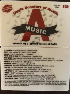 These cards include discounts to many local and national businesses in and around Austin.